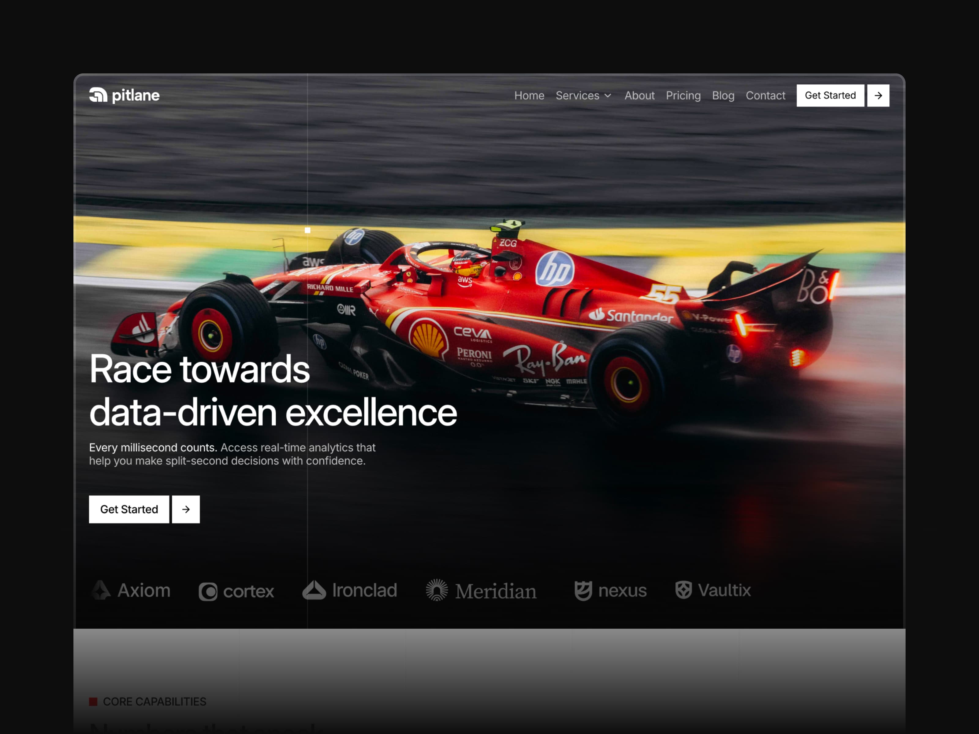 Pitlane is a premium Framer template for SaaS, tech startups, and data platforms. Built for B2B software products, developer tools, API services, analytics dashboards, and high-performance web apps.